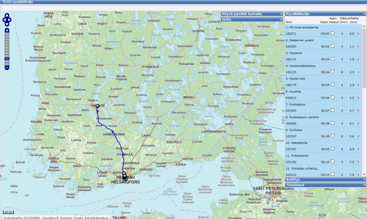 The RAE tool is a route and timetable editor managed by Fintraffic, which can be used to store public transport routes with their bus stop chains and bus stop-specific timetables as GTFS-formatted data.
