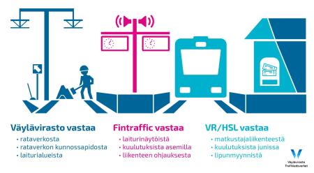 - Ratainfran omistava Väylävirasto, liikenteenohjauksesta vastaava Fintraffic sekä liikennöitsijät tekevät ympäri vuoden jatkuvaa yhteistyötä. Talvella yhteistyön merkitys korostuu. Kun tiedossa on myrskykelit, niin varautuvat kaikki rautateiden toimijat tilanteeseen. Talvea varten on tehostettu seuranta sään ennakointiin sekä toimijat yhteisesti seuraavat onnistumista viikoittain, jotta voitaisiin turvata matkustajien mahdollisimman aikataulujen mukainen liikkuminen.