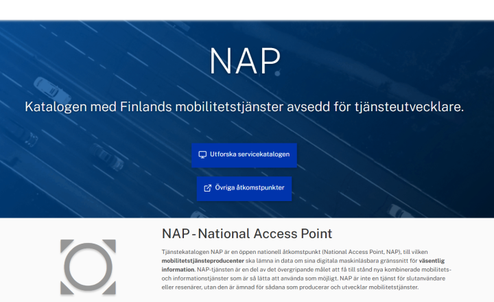 Tjänstekatalogen NAP är en öppen nationell åtkomstpunkt (National Access Point, NAP), till vilken mobilitetstjänsteproducenter ska lämna in data om sina digitala maskinläsbara gränssnitt för väsentlig information. NAP-tjänsten är en del av det övergripande målet att få till stånd nya kombinerade mobilitets-och informationstjänster som är så lätta att använda som möjligt. NAP är inte en tjänst för slutanvändare eller resenärer, utan den är ämnad för sådana som producerar och utvecklar mobilitetstjänster.
